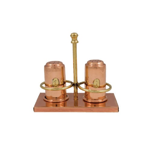 Set Solnita din Cupru Sare si Piper cu Suport, Lucrat Manual in Grecia